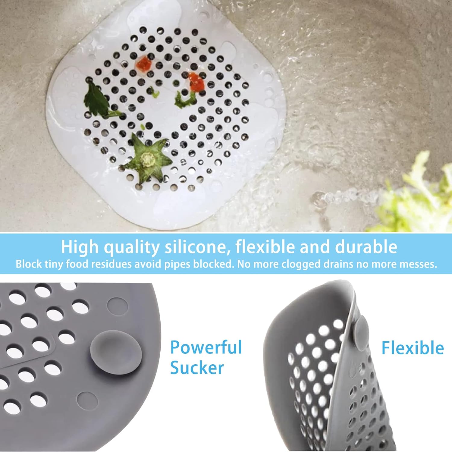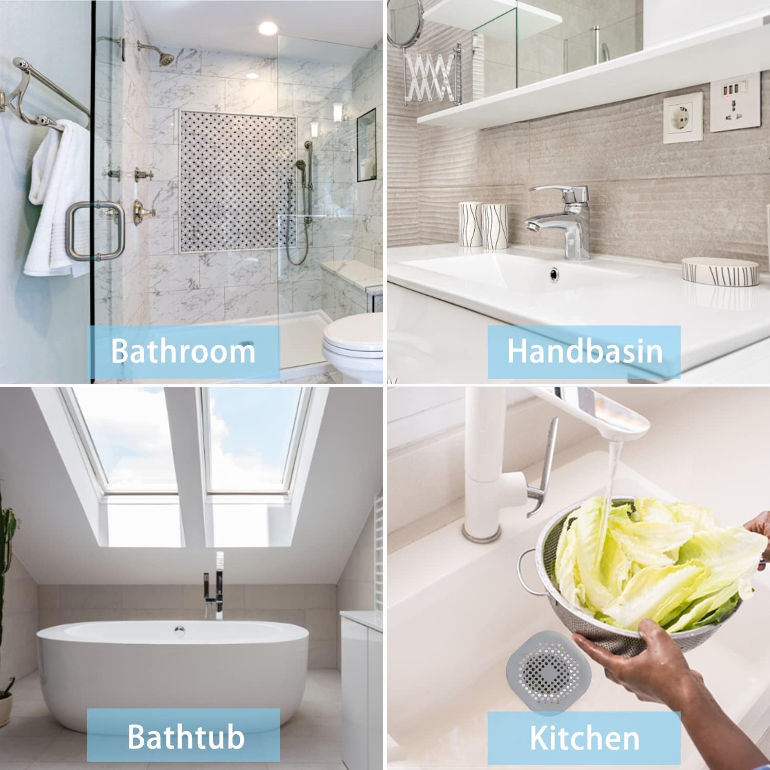 【Multi-Application】The drain cover can easily block tiny debris, so it can be used in kitchen sink to stop food bits going down plug hole, also used in bath/shower to trap hairs, make your drain keep smooth and clean. Fit for bathroom, bathtub, laundry, kitchen etc.